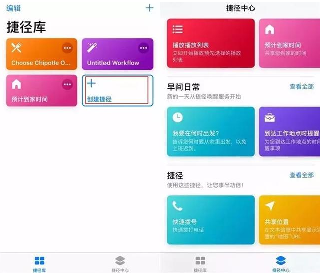 在捷径中心,你可以看到一些内置的捷径。种类非常丰富,基本上涵盖了一天的工作生活作息提醒,可以让你更规律。