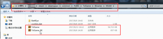 在steam库中找绝地求生文件-右键-属性-本地文件-浏览本地文件-点击“TslGame”文件-点击“Binaries”文件-点击“Win64”文件就能看到绝地求生游戏的两个进程文件“TslGame”和“slGame-BE”,如下图所示: