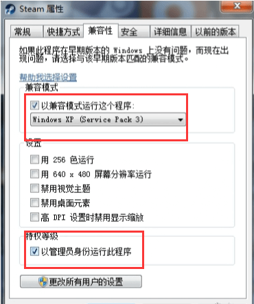 将steam平台以管理员的身份以及兼容模式运行:桌面右击steam图标-属性-兼容性-勾选“以兼容模式运行这个程序”-在勾选“以管理员身份运行此程序”-应用;