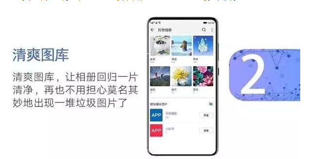 升级到EMUI 9.0系统,还你一个清爽图库,对一些应用缓存图片提前扫描过滤,并加入垃圾相册黑名单,让它们不能显示在相册界面。