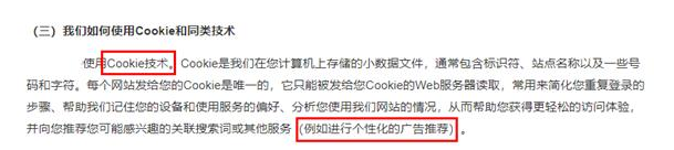 仔细阅读,你会发现“Cookie”技术就是推送广告的关键,它会一直在读取你的数据,分析你可能感兴趣的关联搜索词,从而推送你“喜欢”的浏览内容,其中就包括广告。