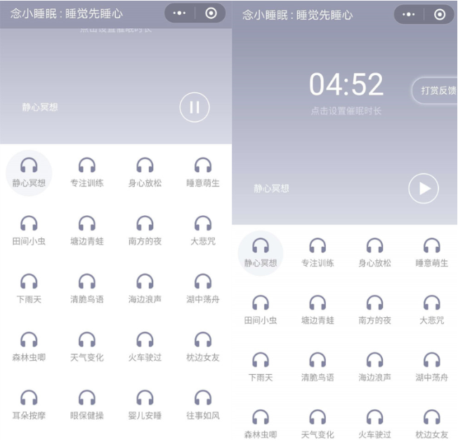 小编之前有介绍过几款睡眠类的小程序,今天再来推荐一款,毕竟大家的习惯、喜好不同,可以进行多种选择。念小睡眠是一款睡前辅助小程序,提供了很多粹睡眠神曲,帮你阻挡世界的嘈杂,营造完美氛围,让你更容易入睡。