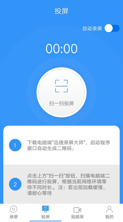 如果你在电脑上安装了迅捷录屏大师,启动程序自会生成二维码,打开手机APP,点击“扫一扫投屏”,扫描电脑端二维码,就可以将手机画面我来教你到电脑,就是这么简单。