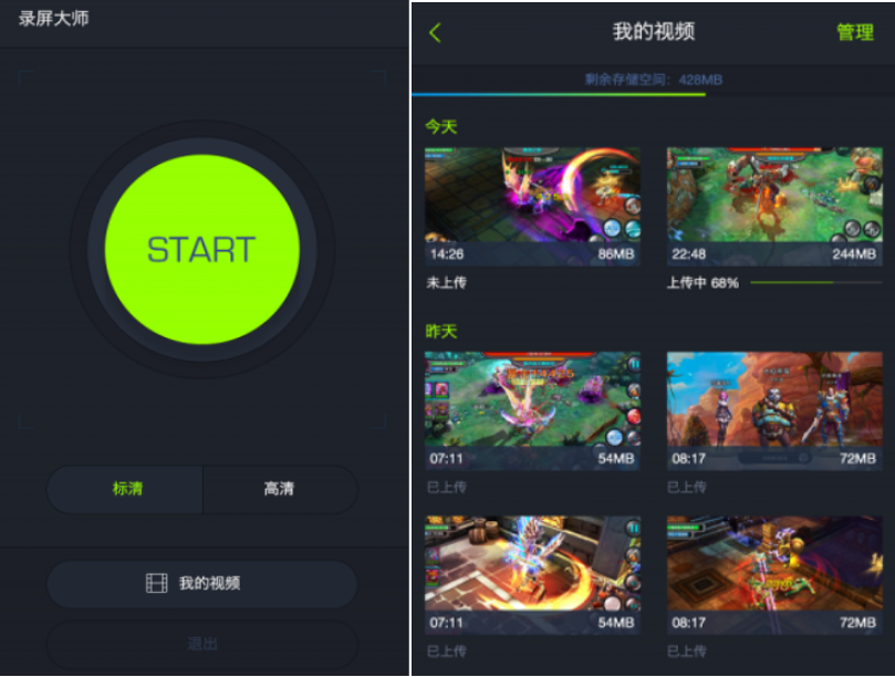利用拍大师可以轻松录制王者荣耀、穿越火线、第五人格等手游操作并保存为高清视频,还可以上传到优酷、今日头条、抖音、快手、秒拍、朋友圈、QQ空间、微博等平台社区。