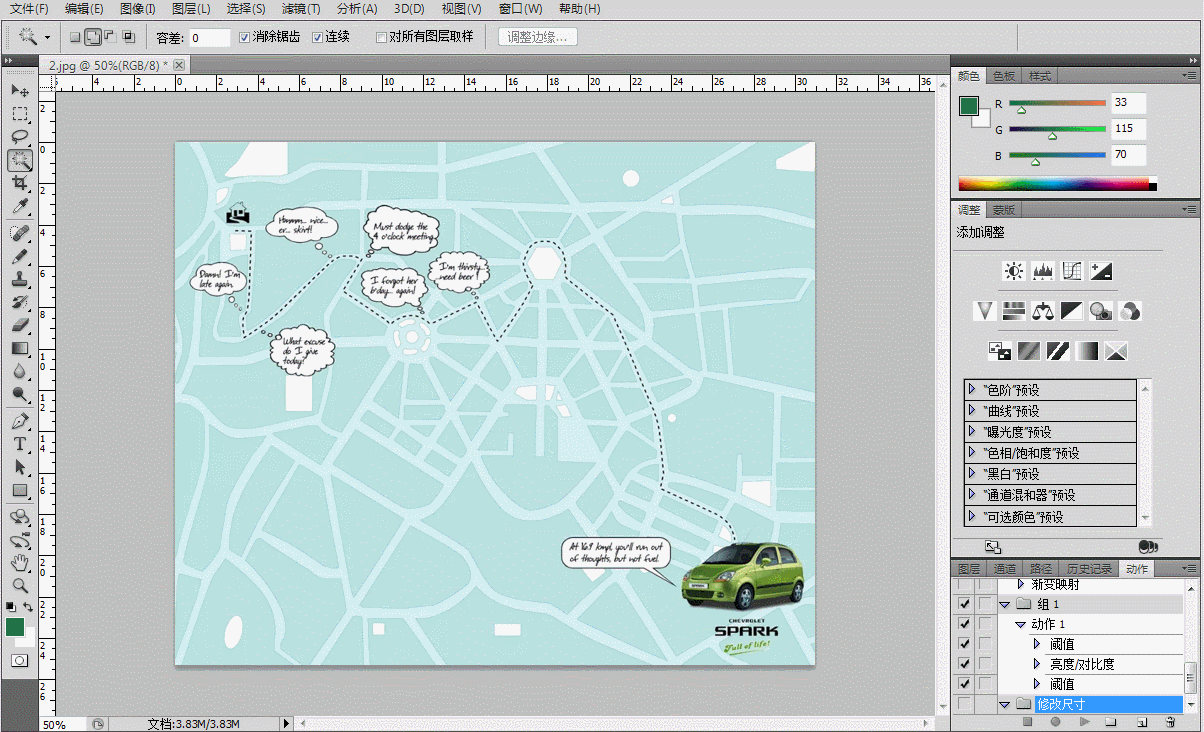 点击下方的“创建新动作”按钮,命名为800px,点击菜单栏【图像】—【图像大小】,修改图片尺寸,另存到刚刚新建的文件夹。整个动作已经录制完成,点击最左边的方形小按钮停止录制。