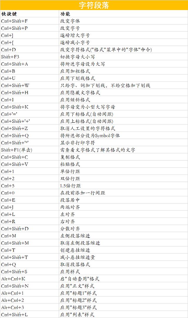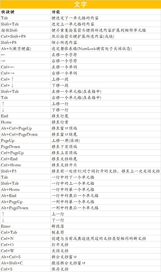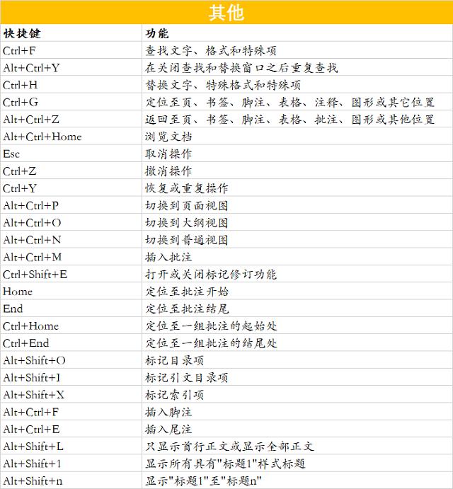 Word常用快捷键汇总整理