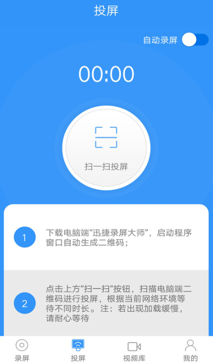 迅捷录屏大师APP还支持投屏功能,可以将手机屏幕投放到电脑桌面,无需额外线路支持,只要扫一扫二维码就能实现投屏,如此一来,我们就能享受大屏观影体验。