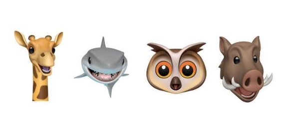 苹果在新版本中加入了四个全新的动画表情:野猪、鲨鱼、长颈鹿和猫头鹰,用户可以在FaceTime或信息中录制相应的表情。