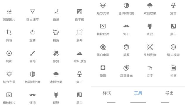 snapseed的功能非常多,可以对照片进行整体的色彩调整、锐度调整,裁切处理,也可以对照片局部色彩进行修整,还可以实现胶片效果,当然,受到广大女性喜爱的美颜、瘦脸等功能也很容易实现。最主要的是,snapseed运行流畅、操作灵活,大家不妨一试!