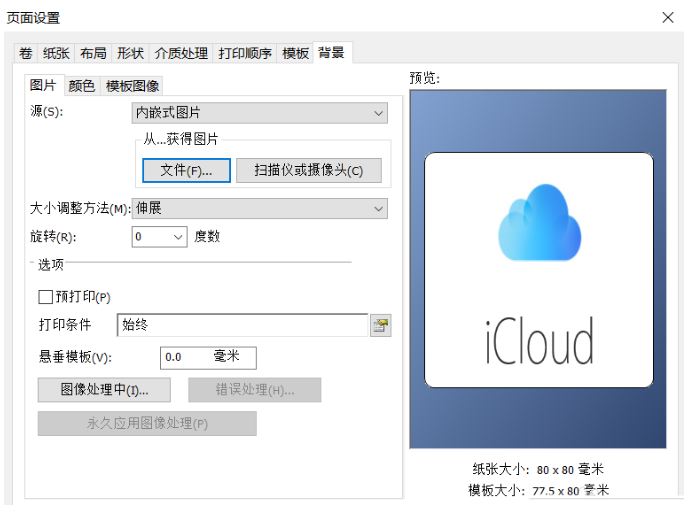 打开BarTender软件,新建一个空白模板,鼠标右击模板,点击进入【页面设置】窗口,选择【背景】,