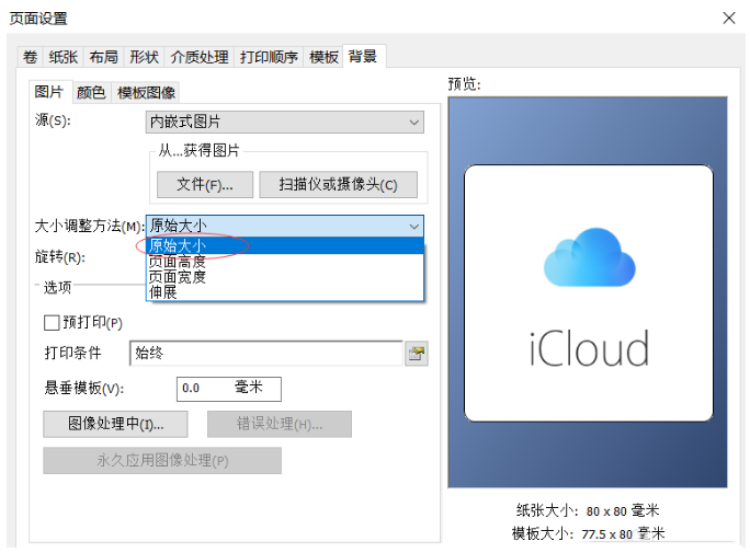 如图,点击【大小调整方法】——【原始大小】,