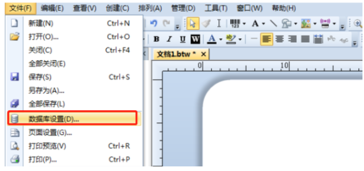 打开BarTender软件,进入编辑界面,新建一个空白模板,点击菜单栏的【文件】——【数据库设置】,