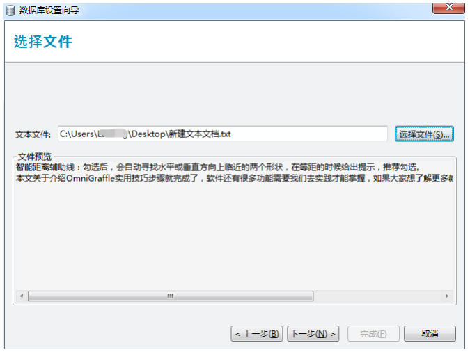开始选择文件,点击按钮,选择需要添加到数据库的文本文件,再进行下一步,
