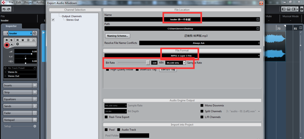 修改完成,设置相关导出参数,成功导出音频即可。