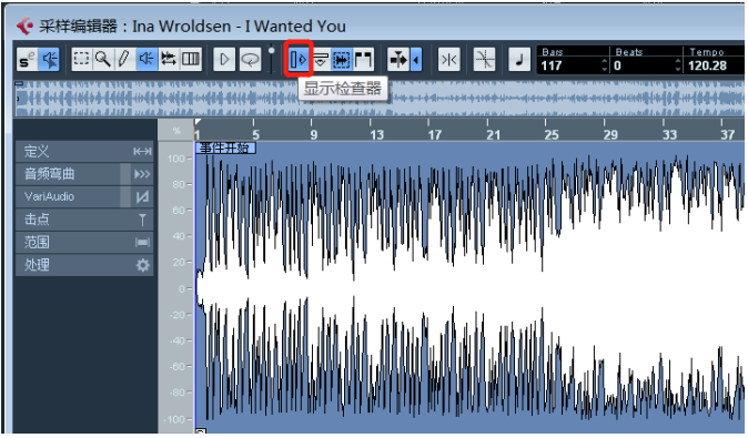 然后在采样编辑器的右侧点击“VariAudio”功能,将其展开,如图,
