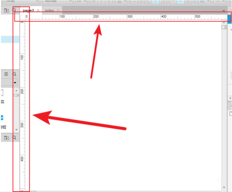打开AxureRP软件,进入页面,可以看到上方和左侧标有尺度,