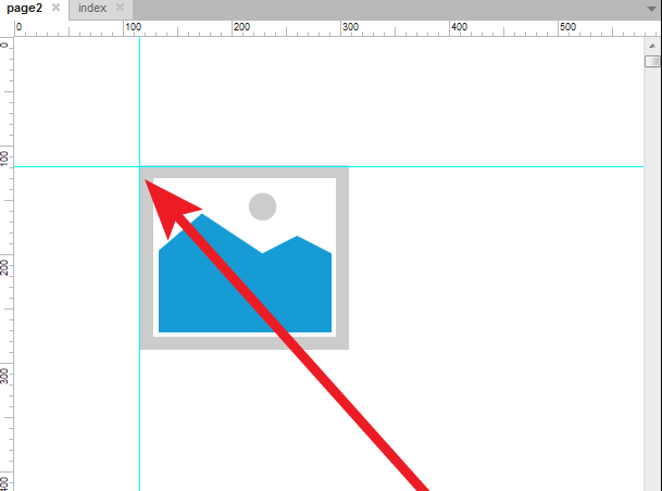 用鼠标将页面辅助线拽出来,如图,页面辅助线只在当前页面中显示,