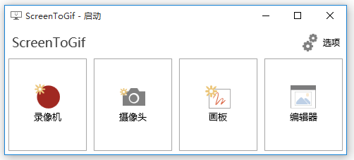 打开ScreenToGif软件,出现程序界面,四大功能一目了然,