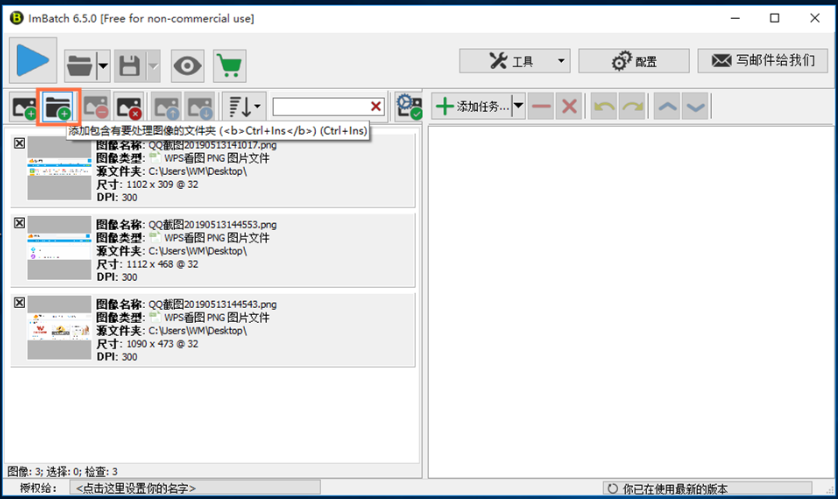 直接拖入图片到软件中,也可以点击上方的【添加包含有要处理图像的文件夹】选项,导入图片,