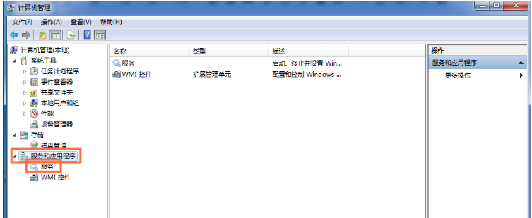 进入计算机管理界面,双击左侧的【服务和应用程序】,点击【服务】选项,