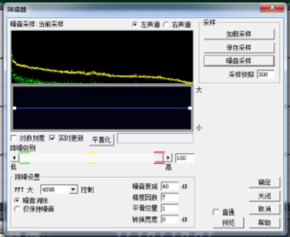 双击【降噪器】选项,弹出窗口,点击【噪音采样】,