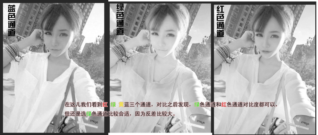 经过比较发现,绿色通道稍微好一些,我们就选择绿色来进行通道抠图了。