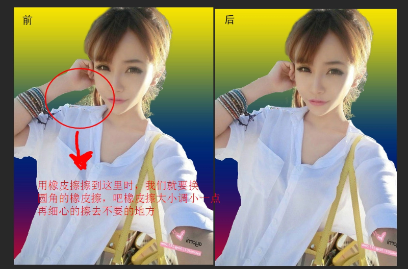 注意:用魔棒工具抠图还留有白边,需要用橡皮擦进行擦除!