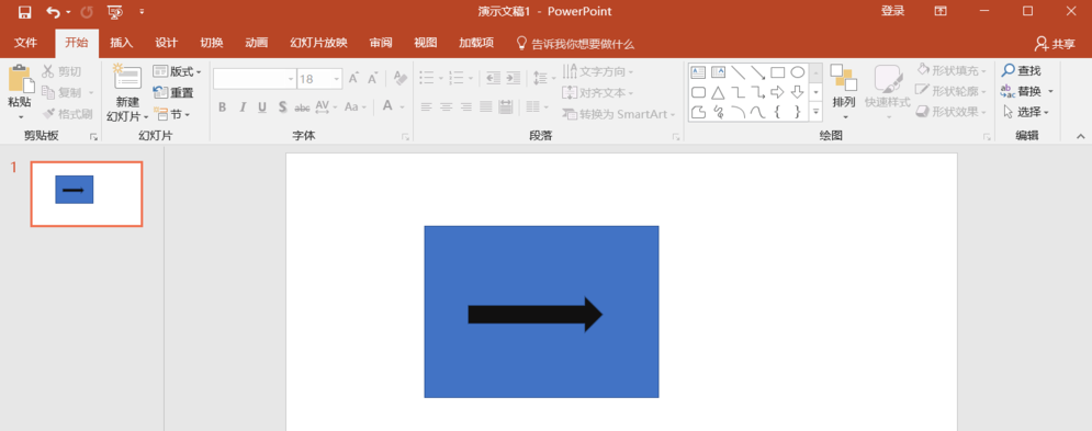 新建一个PPT文件,在幻灯片中插入两个图形,一个是矩形,一个是箭头,