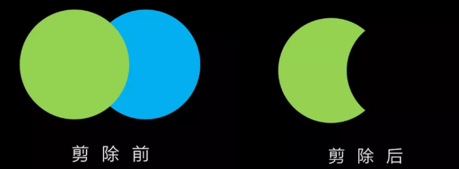 以第一个选中的形状为被减数,另一个为减数,第一个圆剪掉和第二个圆交叉重复的部分。