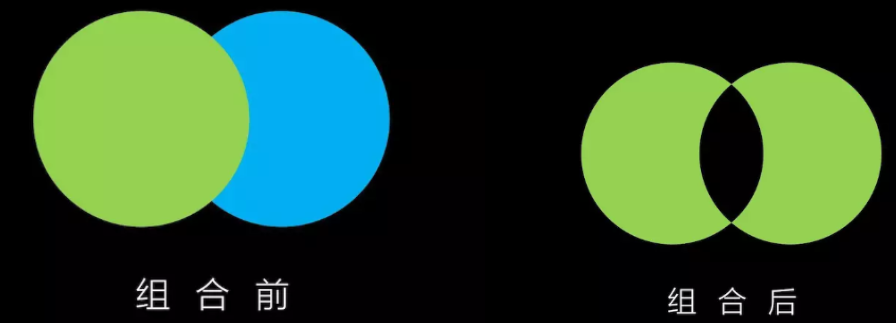 和联合有点相似,唯一不同的是,组合会把形状相交的部分去掉。