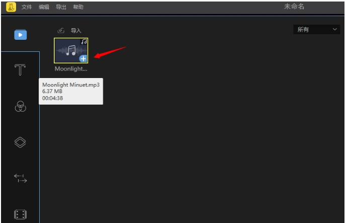 音乐导入成功,点击音乐右下角的【+】,或者直接将音乐拖入下方的音频轨道,