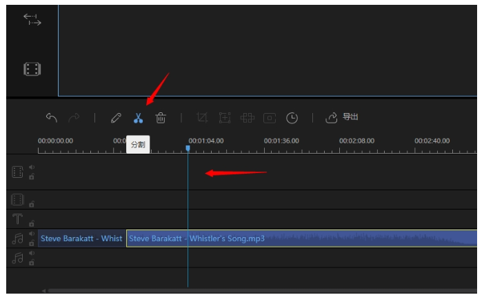 音乐播放至某一时间点,暂停,点击工具栏的【分割】按钮,开始分割音乐;你也可以直接拉动时间轴至某一时间点,然后分割音乐,