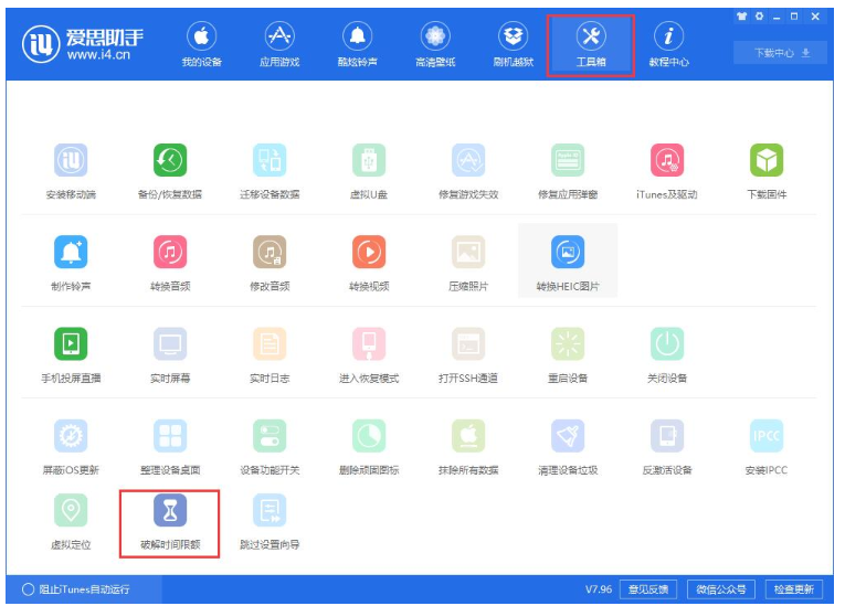 爱思助手PC版又更新啦,此次7.96版本带来了六大功能,包括虚拟定位、安装IPCC、破解屏幕使用时间密码等,下面就跟随小编一起来了解详细内容吧。