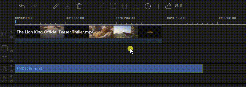 如果音频出现的位置有偏差,可以使用【分割】功能进行调整,选中音频,按快捷键【Ctrl+B】即可分割音频。