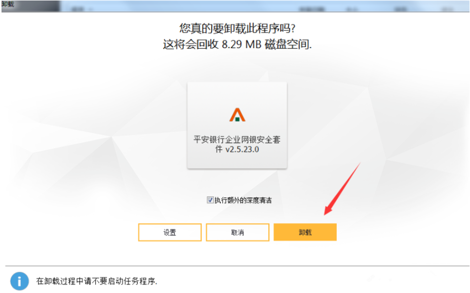 选择想要卸载的程序,点击右下角的【卸载】功能,弹出页面,如图,你还可以执行深度清洁。