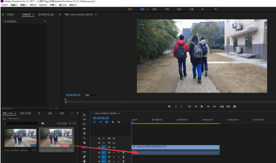 打开Premiere软件,导入视频素材,并将其拖拽到时间轴上,