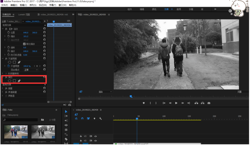 同样也可以改变视频色彩,使得画面变成黑白状态,