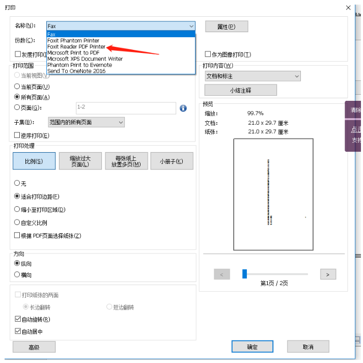 弹出打印窗口,在【名称】下拉框中选择【Foxit Reader PDF Printer】,点击确定,