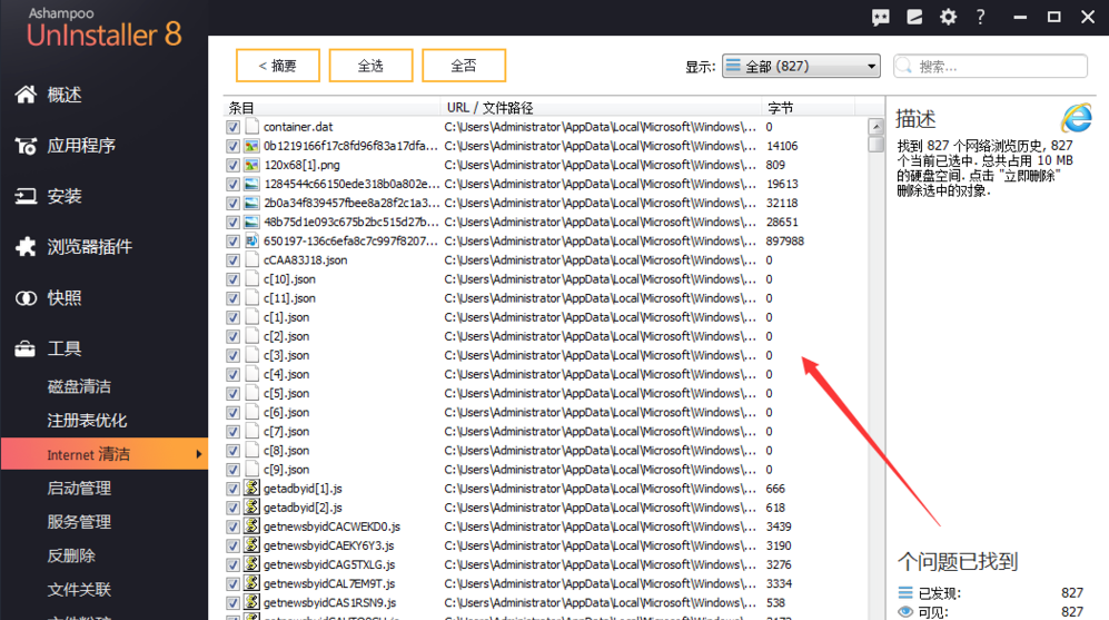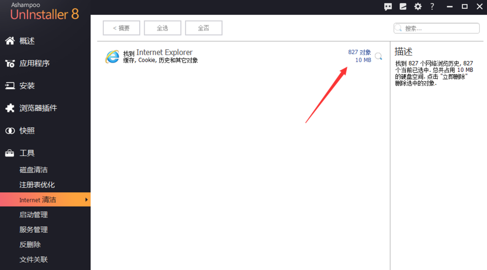 如何利用Ashampoo UnInstaller清理internet缓存?