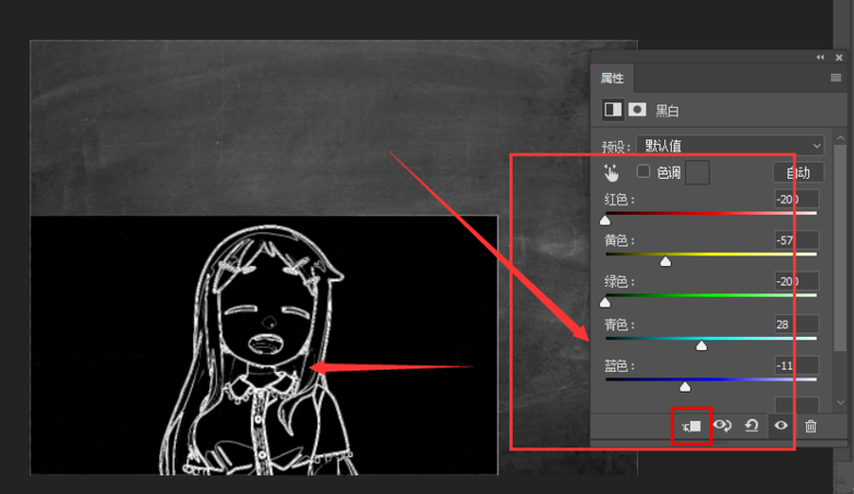 在【属性】窗口中适当调整图片色调,同时将效果仅添加到这一张图片上,点击如图选项即可,