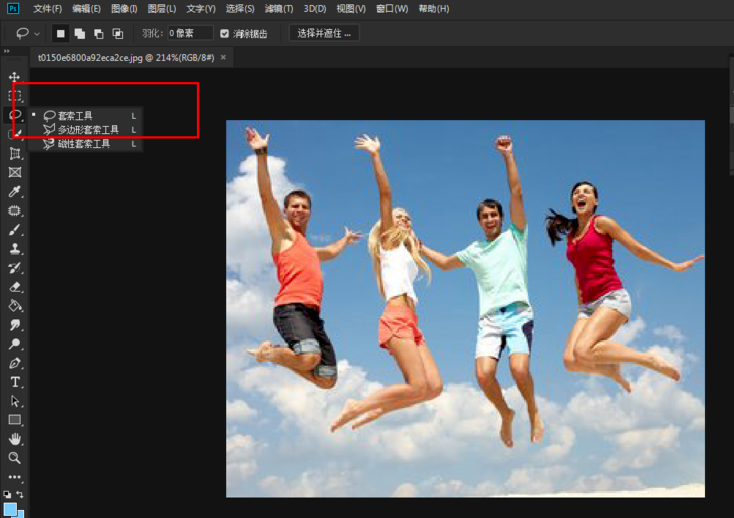 打开Photoshop软件,导入一张需要处理的图片,在左侧工具栏中选择套索工具,