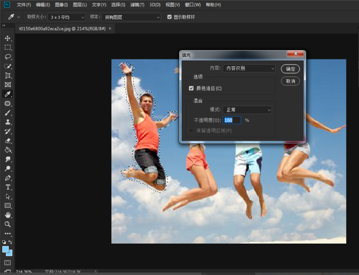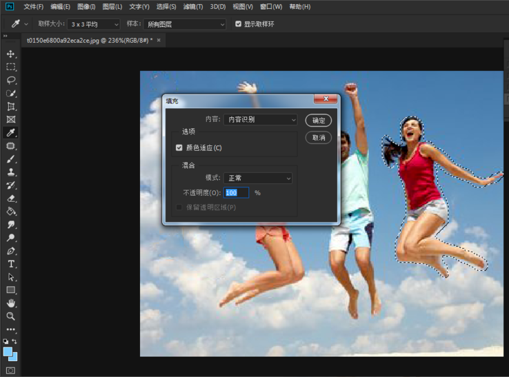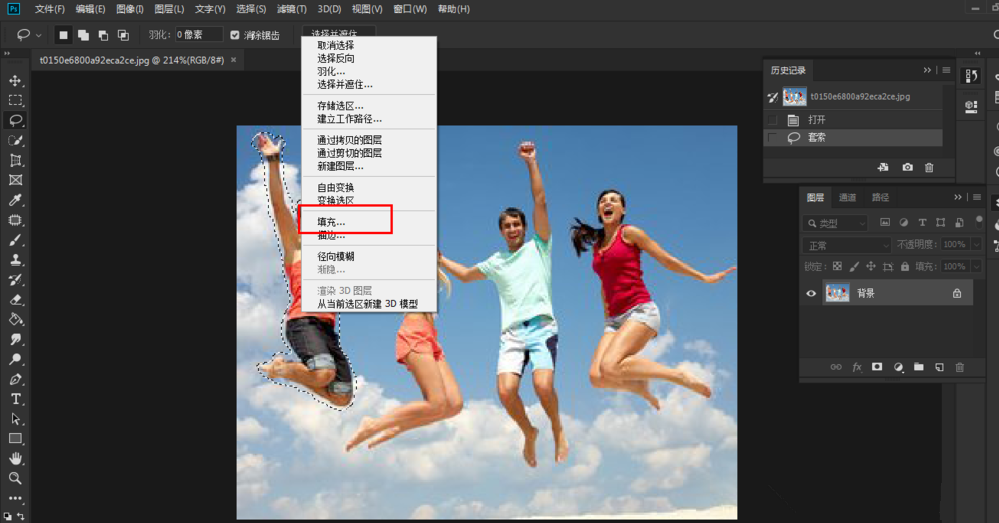 如果没有处理干净,重复之前的步骤,再用套索工具框选人物,填充图层,这样就可以彻底清除左边的人物,