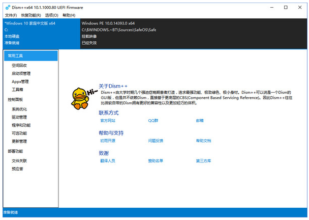 Dism++是一个开源免费的Windows系统优化工具,它不仅可以清除C盘中的垃圾文件,还支持系统备份、系统还原、空间回收、ISO生成器、引导修复、系统备份等功能,可以说是一个非常良心的软件!