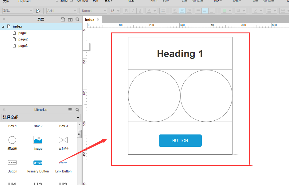 打开Axure RP软件,如图,已经绘制了一个原型图,