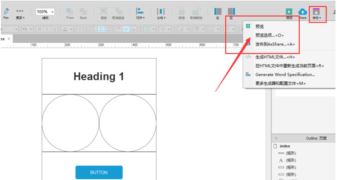 另外,在菜单栏右侧可以找到【预览】选项,同样可以进入浏览器中查看原型图的效果,