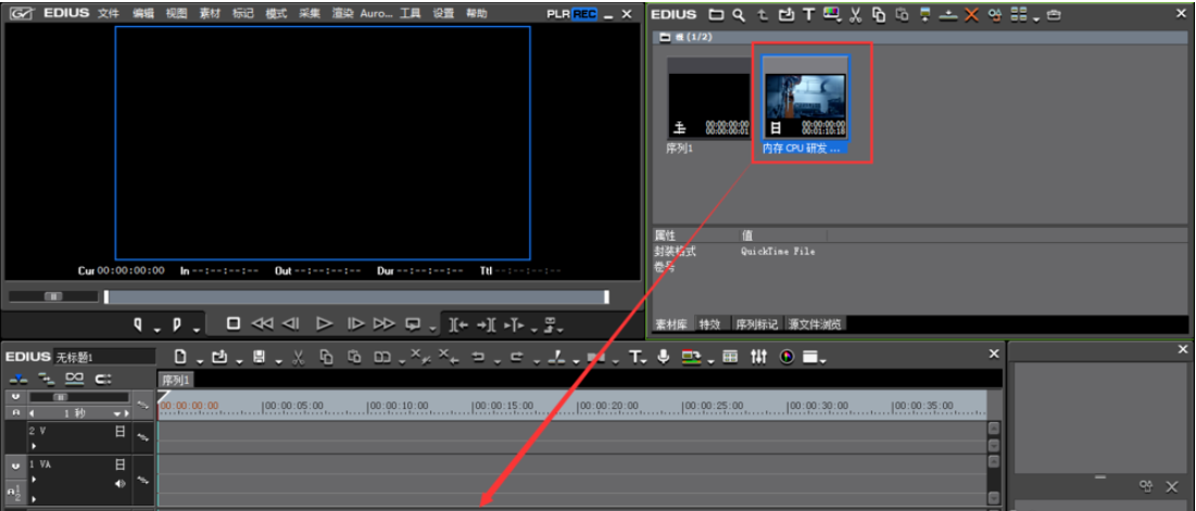 进入EDIUS编辑窗口,双击素材面板空白位置,导入视频素材,