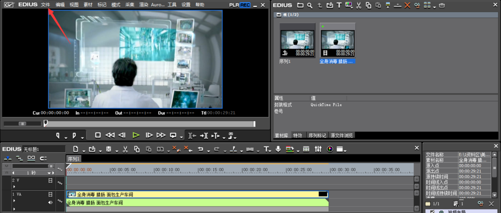 如图,视频剪辑完成,点击软件界面上方的【文件】菜单,