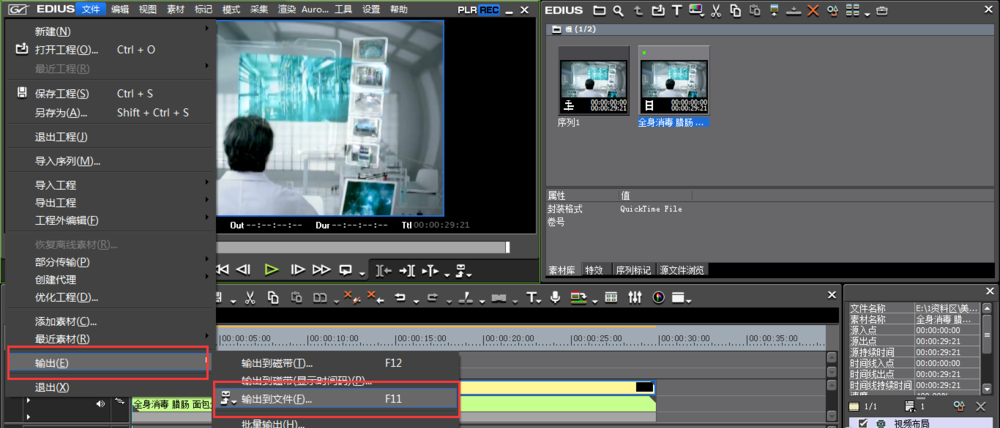 弹出一系列选项,依次点击【输出】——【输出到文件】命令,