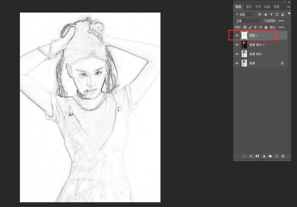 点击图层,线条就抠取出来了,效果如图,