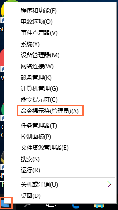 在桌面上右击开始菜单,选择【命令提示符(管理员)】”,点击进入,